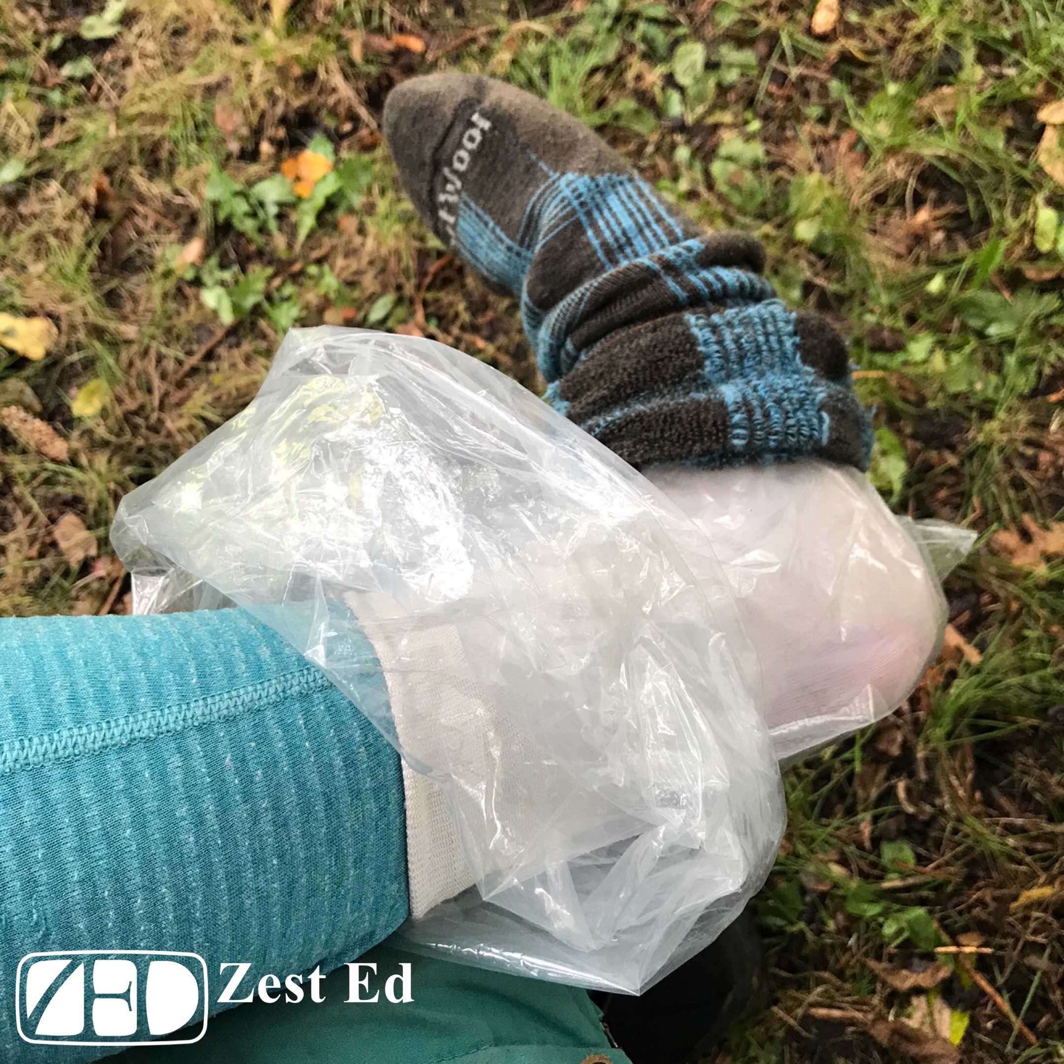 Evaporation is incredibly effective at cooling you even when you are already cold and think you can’t possibly be sweating. VBLs are a critical step when treating or preventing hypothermia in delayed care settings (AKA wilderness). In this context, we’ll focus on just using them on hands and feet. VBLs are very effective but can feel very weird and used poorly can make you more cold.