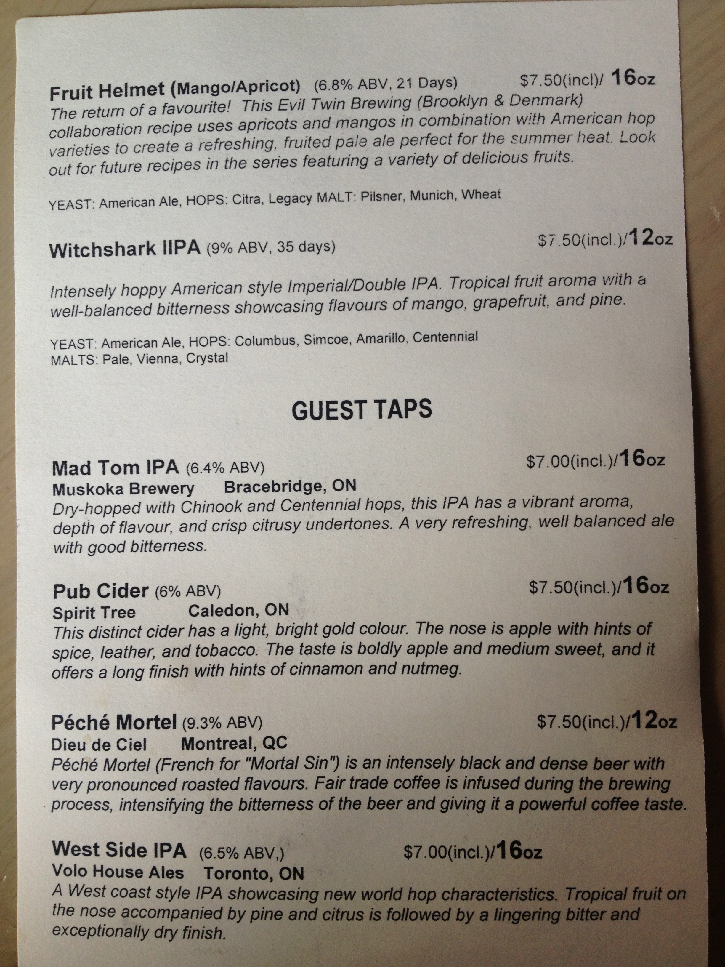 We went first to Bellwoods where my uncle Pao and I hung out last year when my dad was on his personal light speed tour of Toronto’s art museums. He was doing the same thing this time and missed out on these fantastic brews because the place, the whole place had been reserved for the rest of the night. We had 1/2 hour to drink as much as we could.