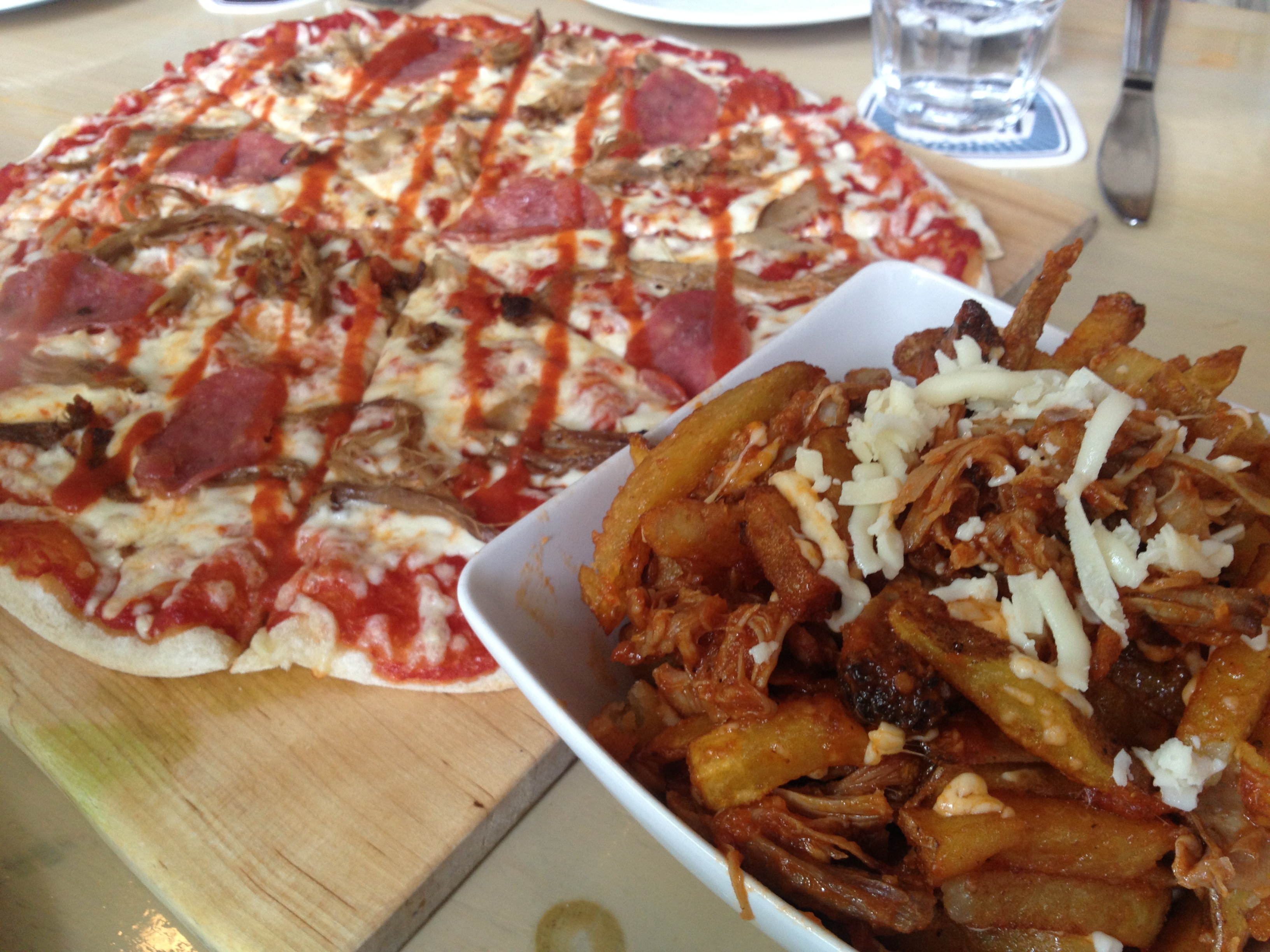 We then ordered poutine and a pizza (with wild boar sausage, pork belly, and smoked pork). Because while we would go directly to a large family meal after this, we could not resist. And because the number one family value I’m aware of is to love all food.