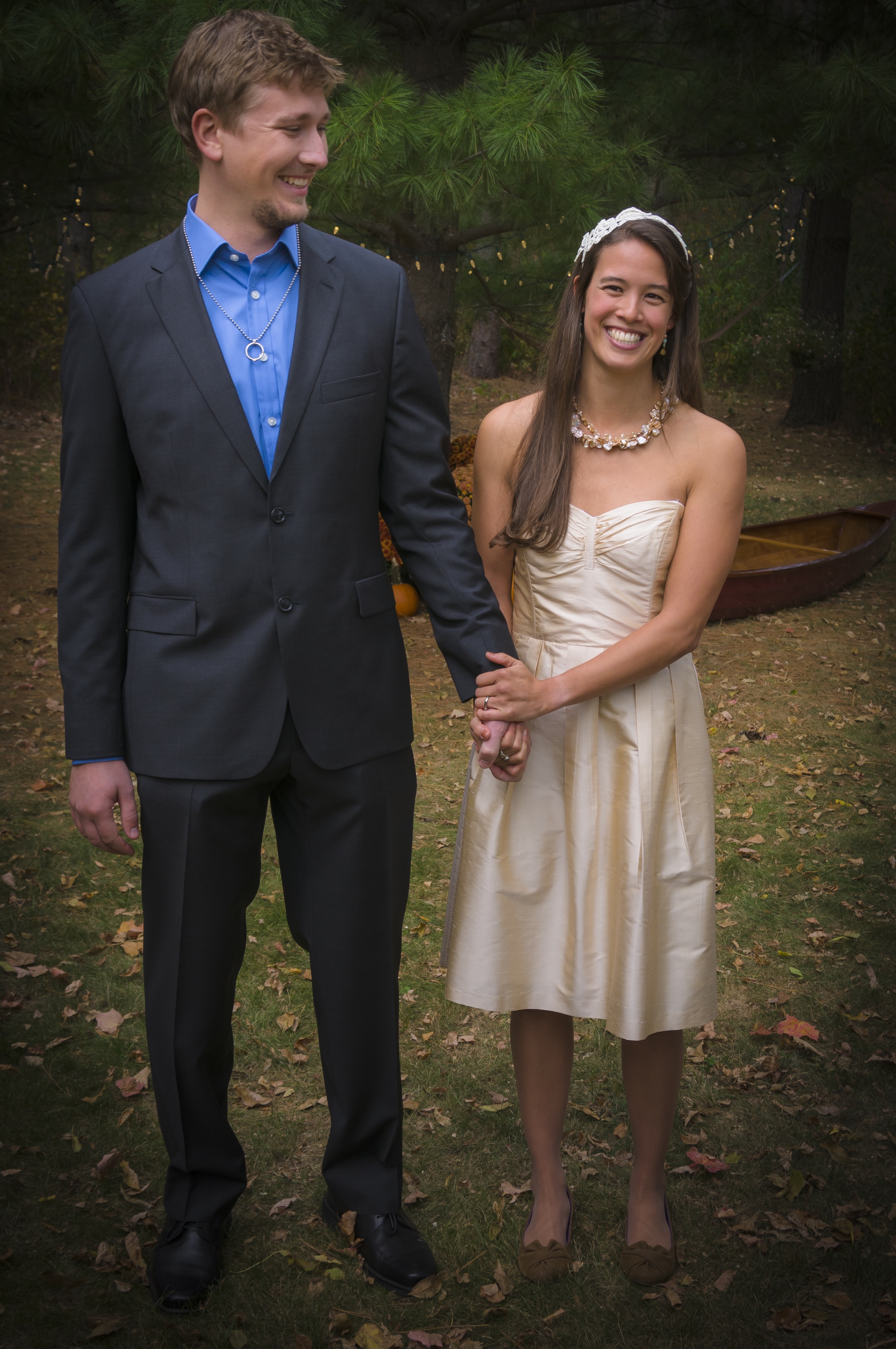 “September twenty-second two-thousand twelve was a partially sunny day with the highs in the 50′s. In February that sounds downright balmy, and that was what I emailed our guests. We said our vows in front of his parents white pine, with a friend officiating from his kindle resting in Tolken’s The Hobbit. It was all very fitting considering our journey ahead.” – A Beginning