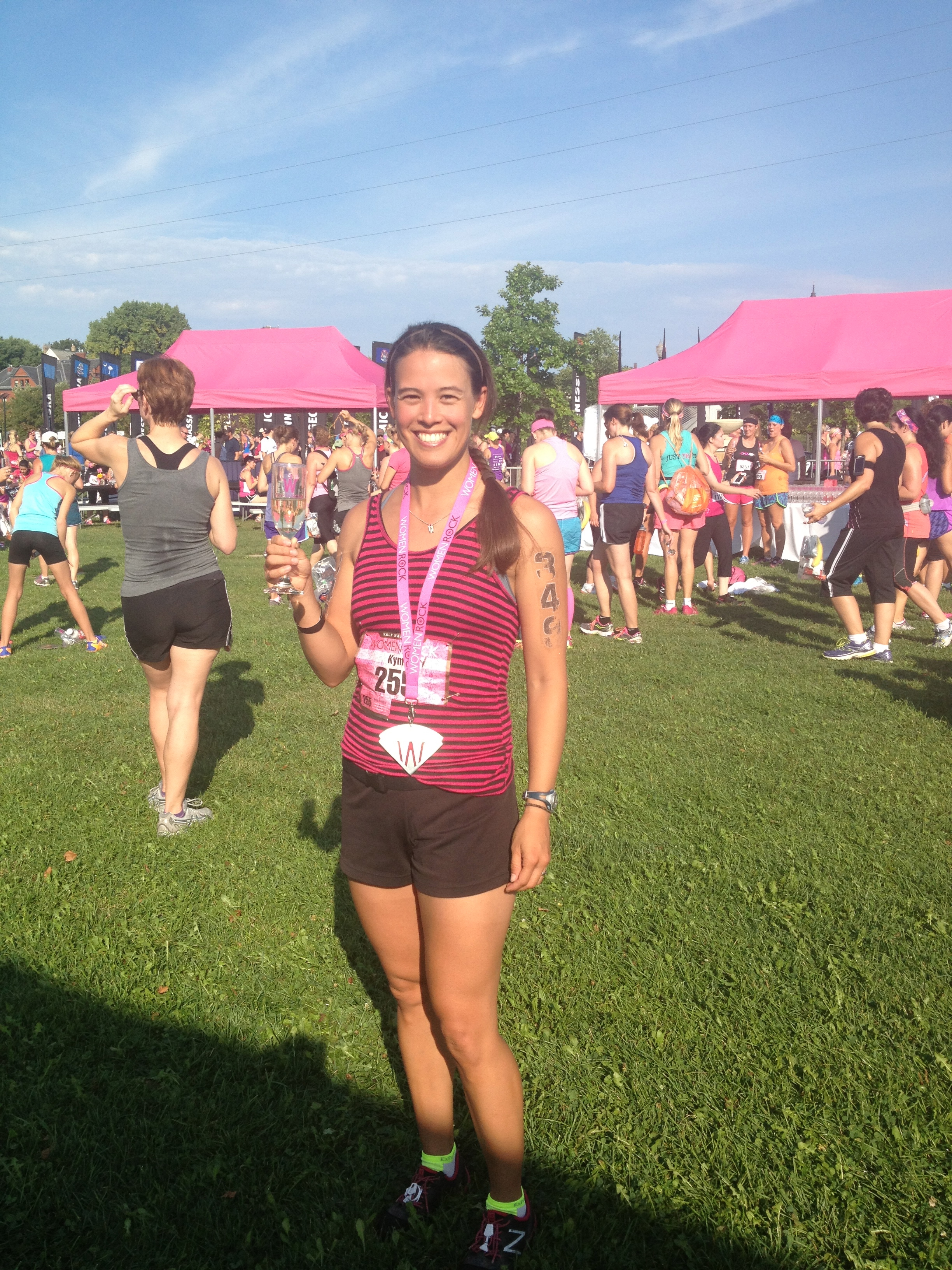 Me with my necklace, medal, and bubbly.