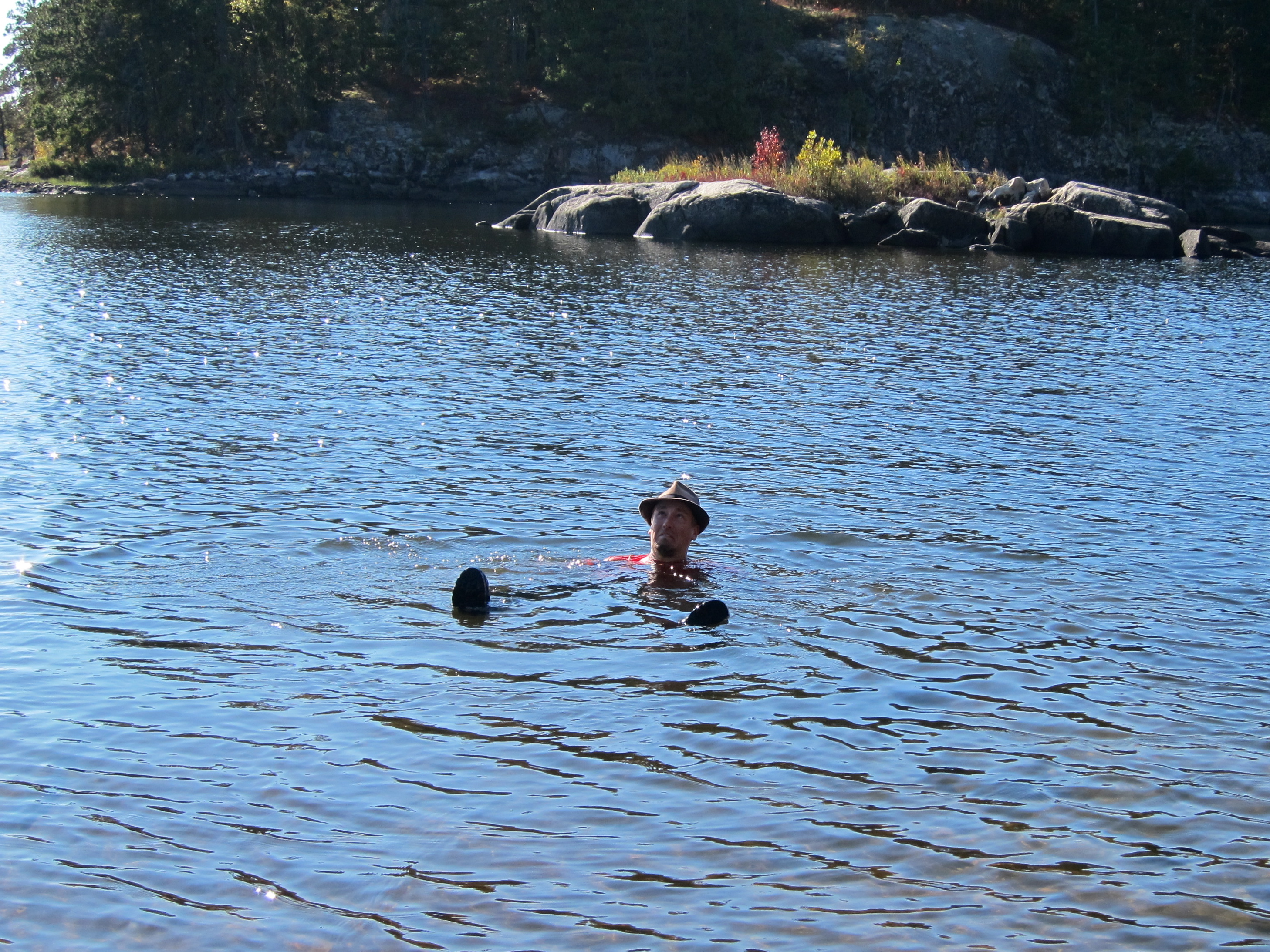 We were deflated once the anger and adrenalin faded. It was only 3pm but we decided to settle at the first site on Lac La Croix. Wearily we unloaded our muddy selves and stuff. Will then tackled me to the ground. It was declared “Emergency snuggling!” after a dreadful day. We stayed there for a while. It was nice to simply stop doing and just be together comfortably on the rocky ground. With our spirits lifted we commenced washing our stuff by getting in the lake fully clothed.
