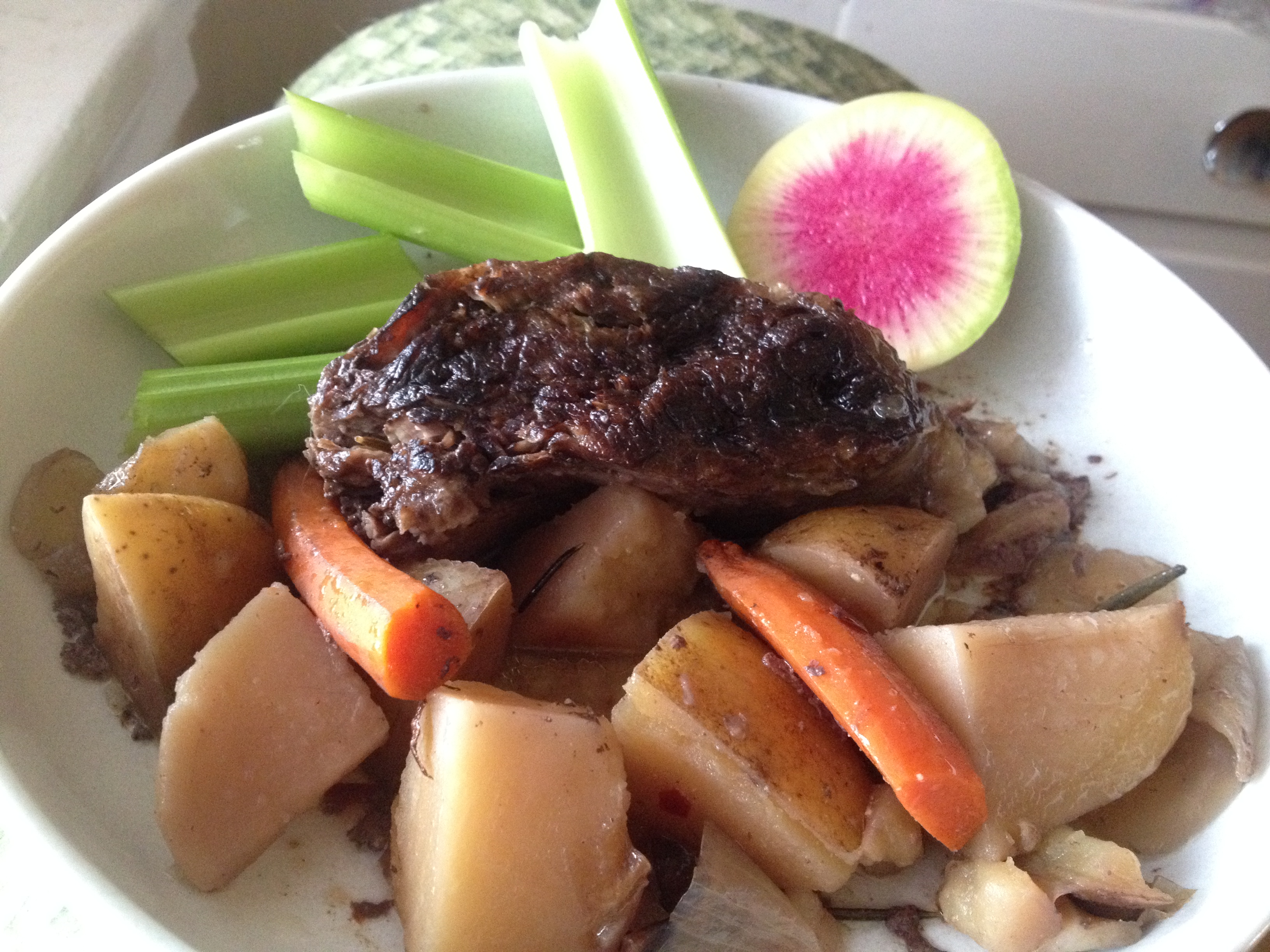 I put more salt and pepper, and a mug of red wine, and a layer of mustard as an afterthought.