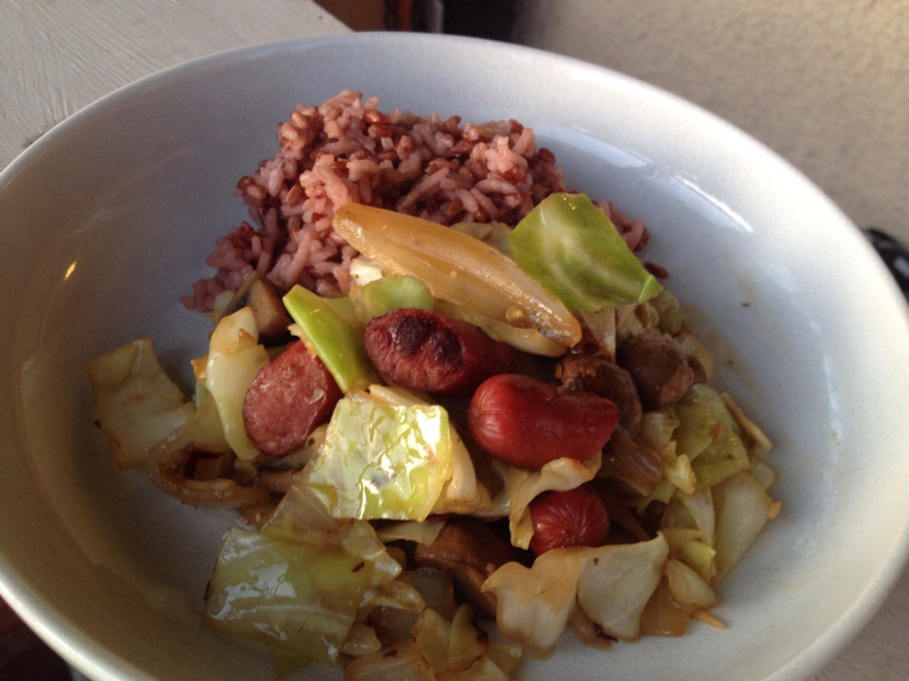 Blasted ice biking, rice and beans, and kale-egg-toast