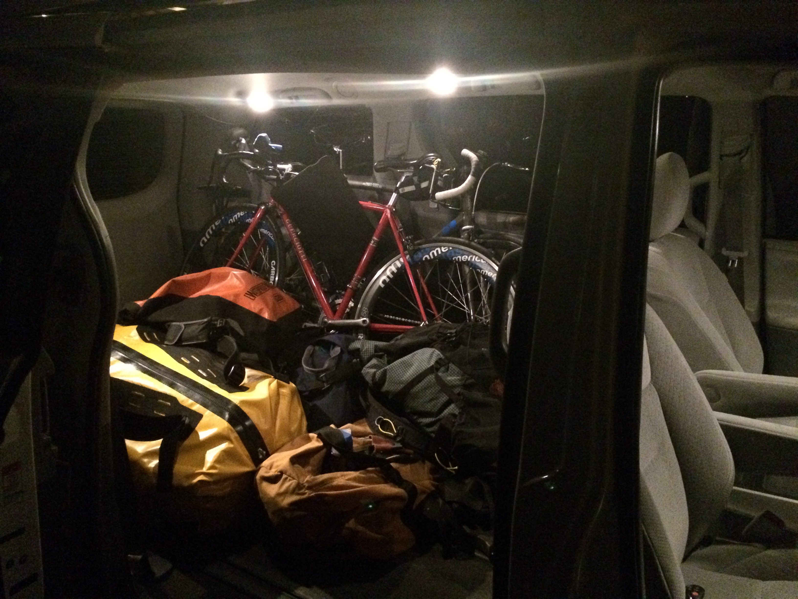 The cavernous rental minivan is just about all packed for the road trip.
