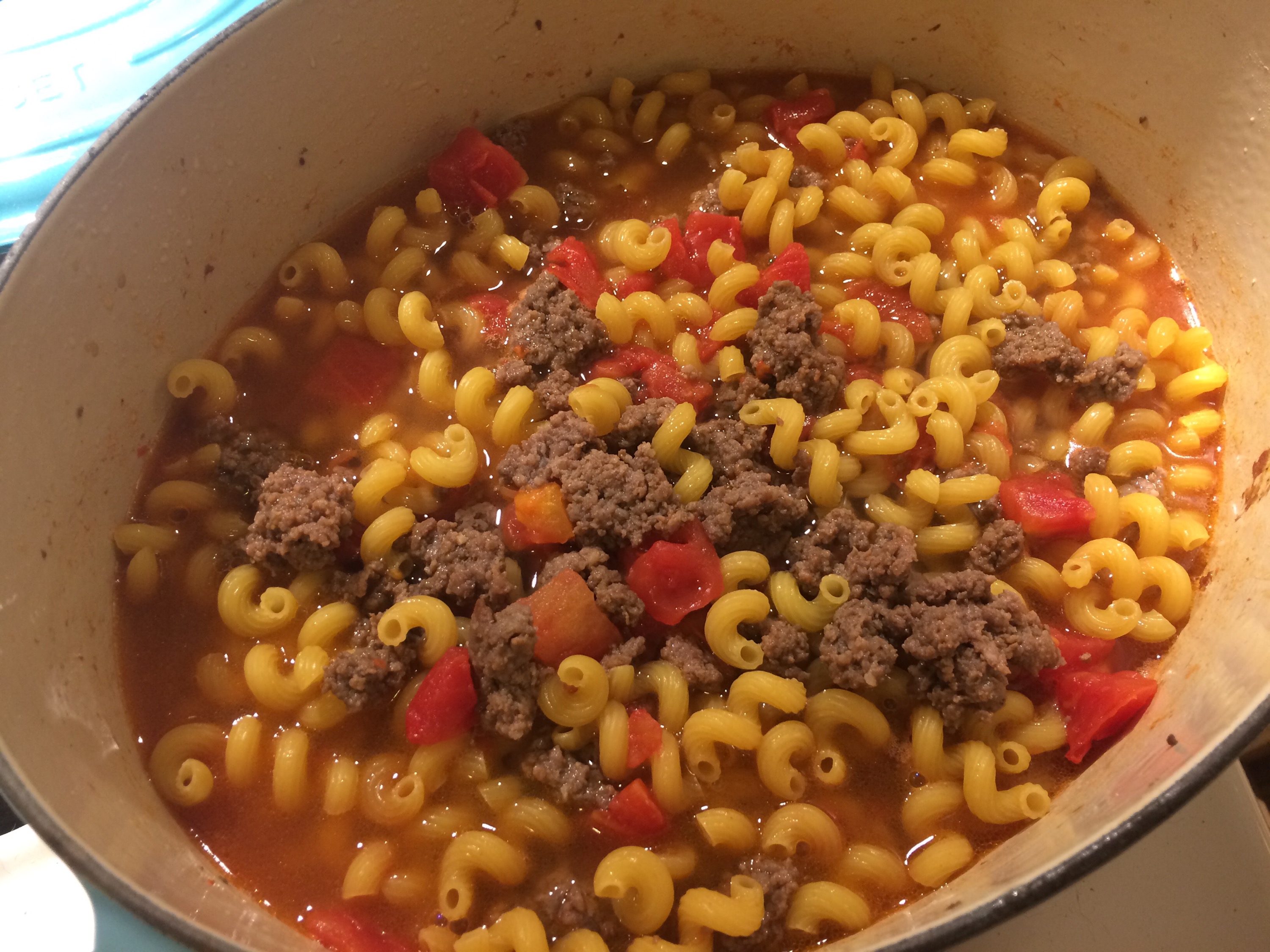 Cheeseburger Pasta – a lovely one pot meal that feels fresher than the winter holiday turkey and potatoes and ham and squash and soups, but is still cozy for cold nights.