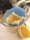 I mixed the mash up in one big bowl and then divided it equally between two jars because that’s just what I had available. I then poured 32oz of raw apple cider vinegar over it and capped the jars (plastic wrap separating the canning lid from the acidic mixture).