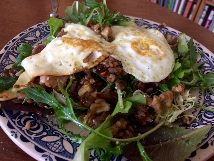 Blasted ice biking, rice and beans, and kale-egg-toast