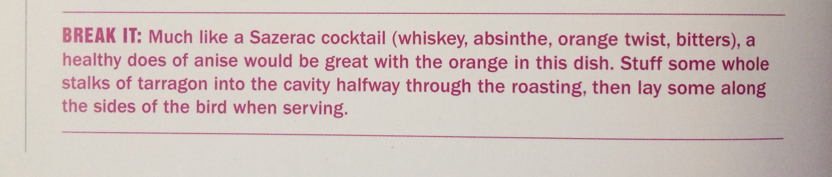 It seemed more like an orange creamsicle and a little boring. Of course I wanted to make it more complicated. So of course I took the suggestion to “BREAK IT” by adding tarragon.
