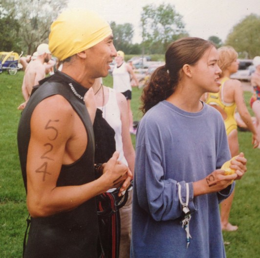 My dad and I in 1997 at my first Triathlon. Wow, 15 was an awkward year.