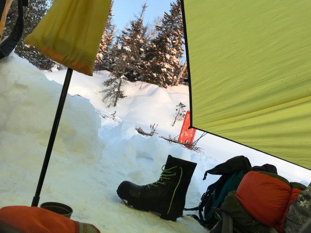 In all these previous years we did two things that make it significantly easier. 1) We did an out-and-back. It means on our way out we follow our own trail making it twice as fast. 2) Had a layover day. Which means staying at the same campsite for two nights. Considering the hours of work that goes into making a winter campsite, using the same one twice greatly eases the burden.