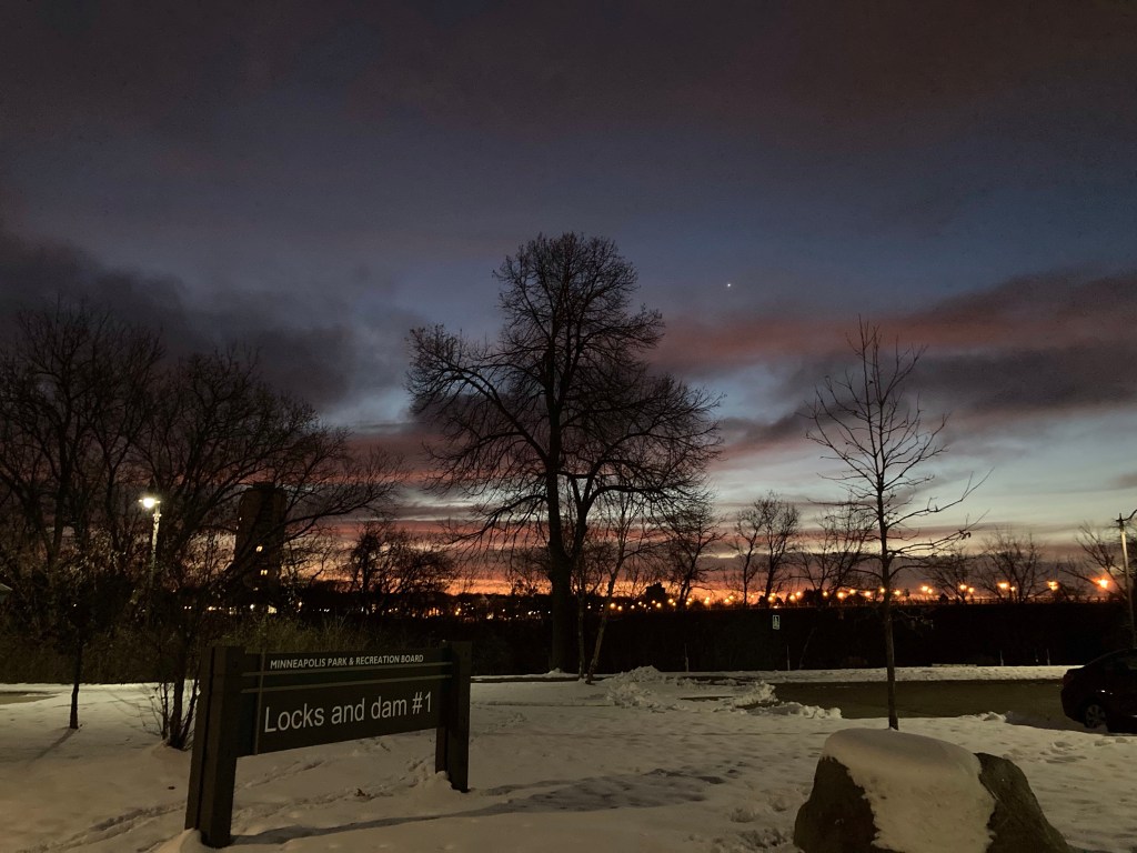 7:02am – I set a new personal record – 10 miles before sunrise (well, almost, 9.77). My GI tract was also striving for a personal record, but that’s not one I relish. Between the river and downtown construction a fox stopped me in my tracks. Beautiful storybook fox galloping towards me in the street. It seemed to roll its eyes and shrug as it trotted by the humans “exercising” on an early “weekend” morning. What absurd animals we are.